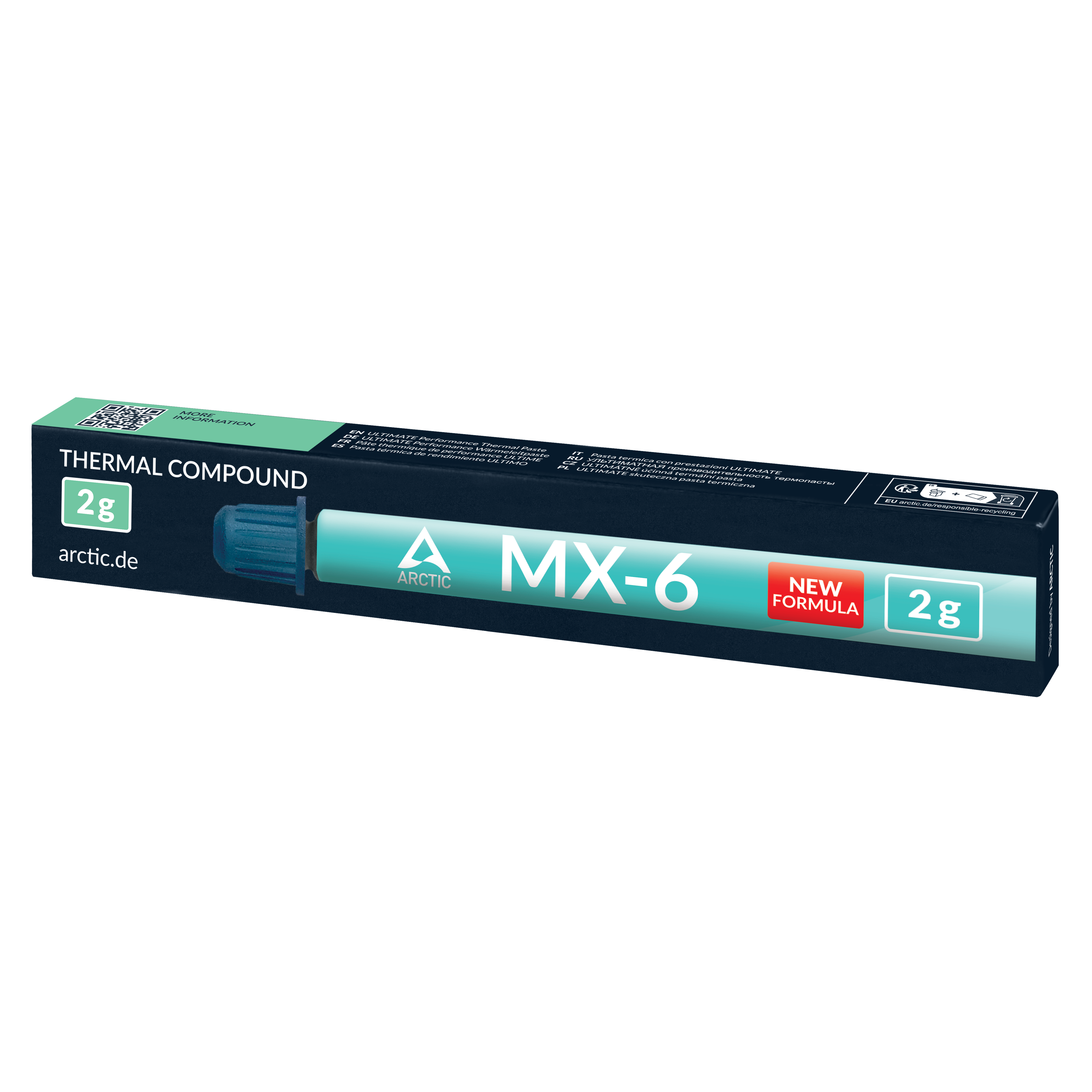 El ARCTIC MX-6 es un compuesto térmico de alta calidad, desarrollado con más de 20 años de experiencia en el mercado de enfriamiento de PC. Su fórmula optimizada se basa en el exitoso MX-4, enfocándose en aplicaciones versátiles y una consistencia fácil de usar.