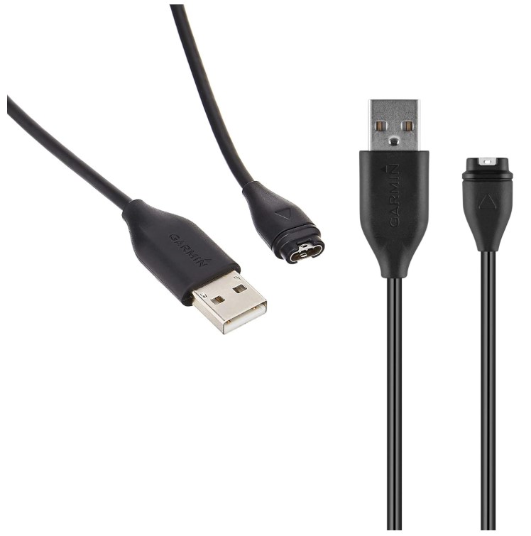 Cable de carga / datos para relojes Garmin Numero de parte 010-12491-01 Conecte el cable al puerto USB de la computadora para cargar su dispositivo compatible y para transferir datos desde y hacia su computadora.